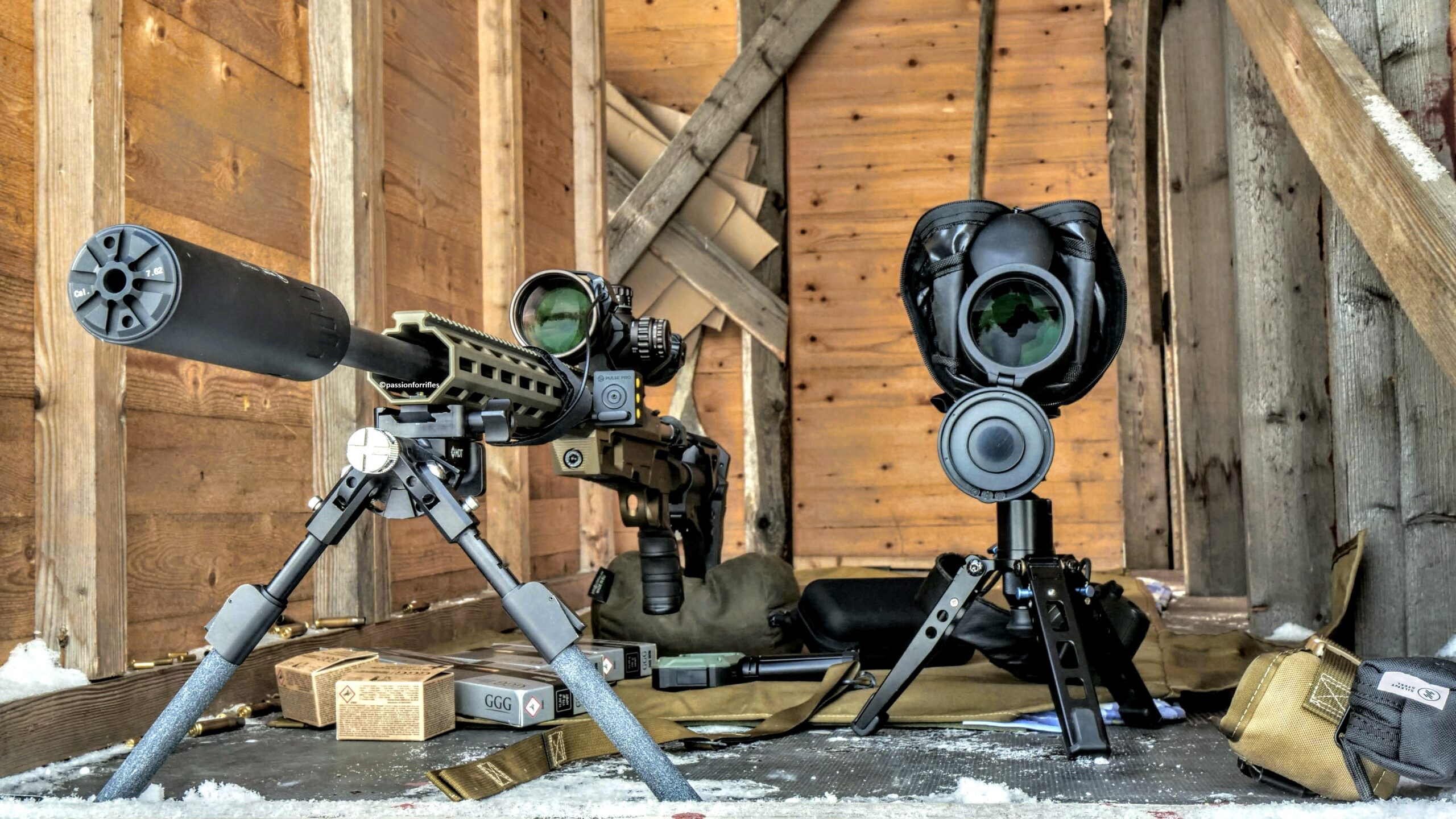 kuten tulee myös picatinnykiskoon käypäiset kiikarin jalatkin, valmis setti kerralla.