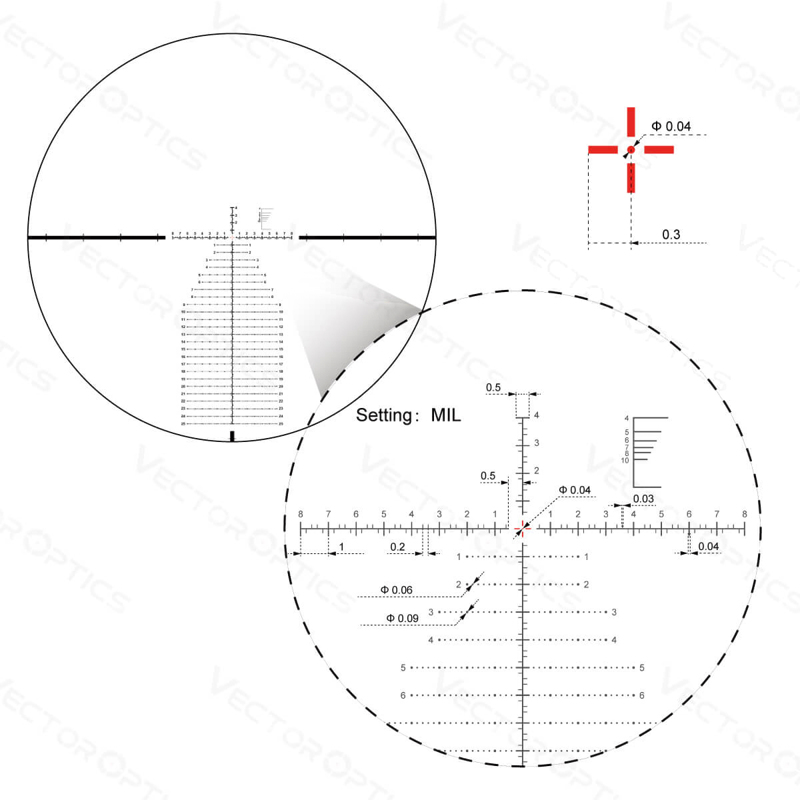 - Ristikon keskitäppä 0.04 MRAD 100-m, eli 4mm, tällä voi ampua vaikka paikkalappuammuntaa.